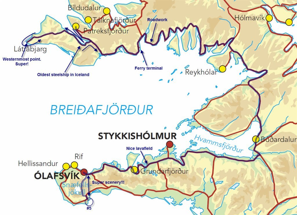 While I was riding towards east I started to feel pressure inside my helmet. Reason for this was ridiculously wide smile :) I was also thinking that tedious ride in the previous day was worth it. Better way to see this westernmost point and Dynjandi waterfall is to come here on a ferry from Stykkisholmur. This way you save time, nerves and you could avoid long road construction which starts around 10km after the ferry terminal (to the east).