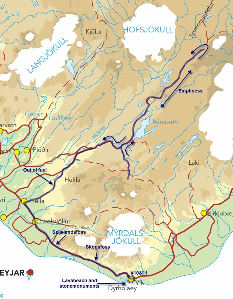 My map showed last refuelling station before heading to inland would be in Fludir, so I stopped there to top-up bike´s tank. In reality there was still two gas stations after Fludir. Last refuelling station can be identified from the sign which said "next gas station 240km".
