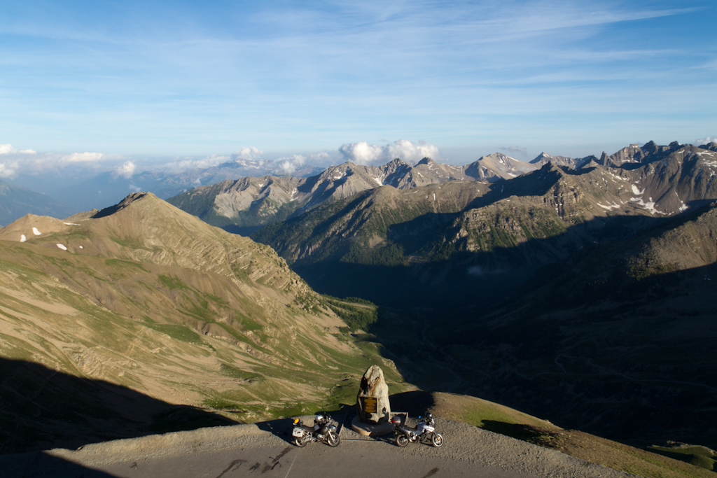 Viimeinen passi tälle päivälle oli 2802m korkea Col de la Bonette (passi itse ei ole noin korkea, vaan passin huipulle on tehty pieni lenkki joka nousee tuohon korkeuteen). Viimeksi täällä käydessäni ei maisemia pystynyt pilvien vuoksi ihailemaan, tällä kertaa maisemat olivat kuitenkin todella upeat!