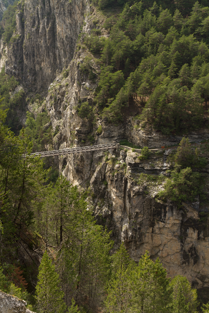 Takaisin vuorille ajaessani eksyin suunnittelemaltani reitiltä. Tämä oli onnekas sattuma, koska vastaan tuli mielenkiintoinen, juuri pyöränmentävä riippusilta. Ajoin tuosta sillasta yhden kerran ohi, koska ajattelin että gepsi varmaan sekoili kun se opasti noin kapealle sillalle. Ilman kommelluksia siitä kuitenkin yli pääsin ja matka jatkui.