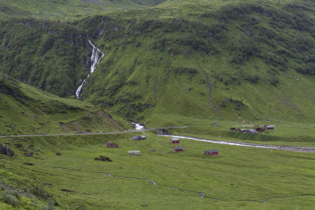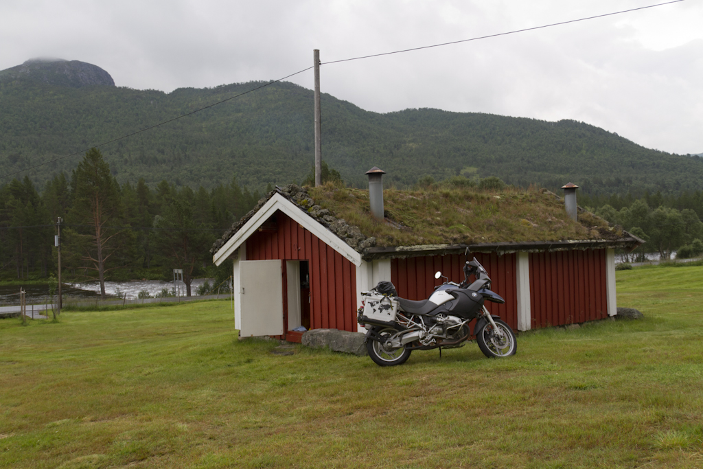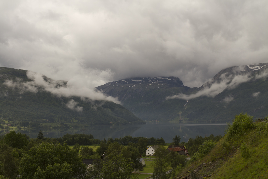 Eilisen ajo varmaan väsytti jonkin verran kun eka kerran heräsin vasta kasin aikaan aamulla. Tuntui kyllä mukavan levänneeltä olo! Aamutoimien ja -palan jälkeen liikenteeseen tihkusateeseen. Suunnitelmana oli päästä mahdollisimman lähelle Geirangeria, jotta torstaina pääsisin ajamaan Geirangerin kautta Trollstigenille.