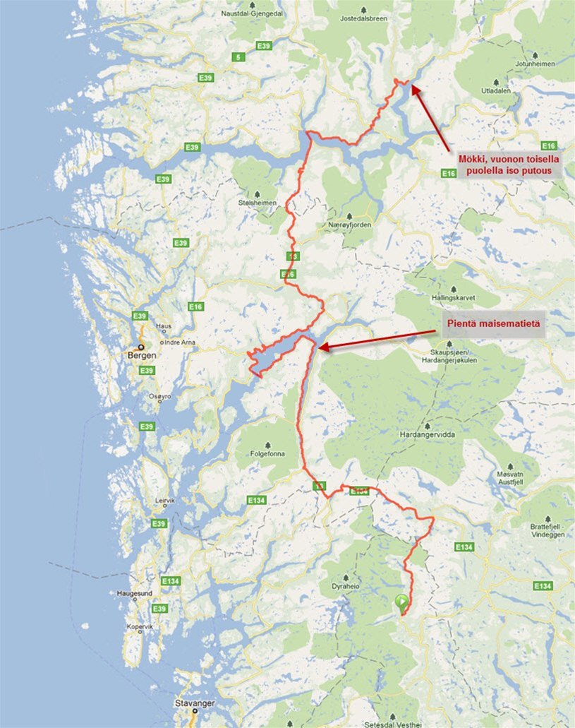 Reitti: Bykle - Gaupne