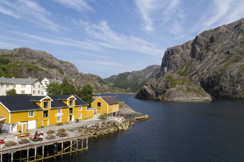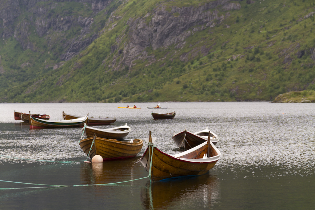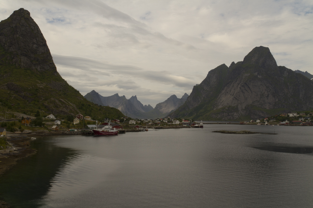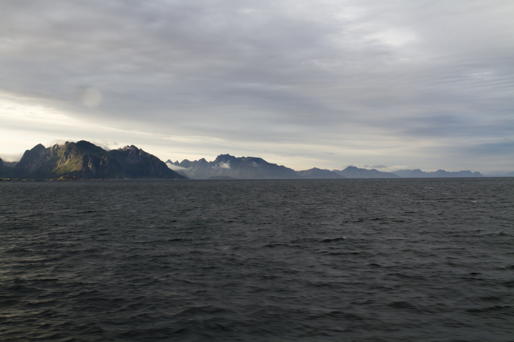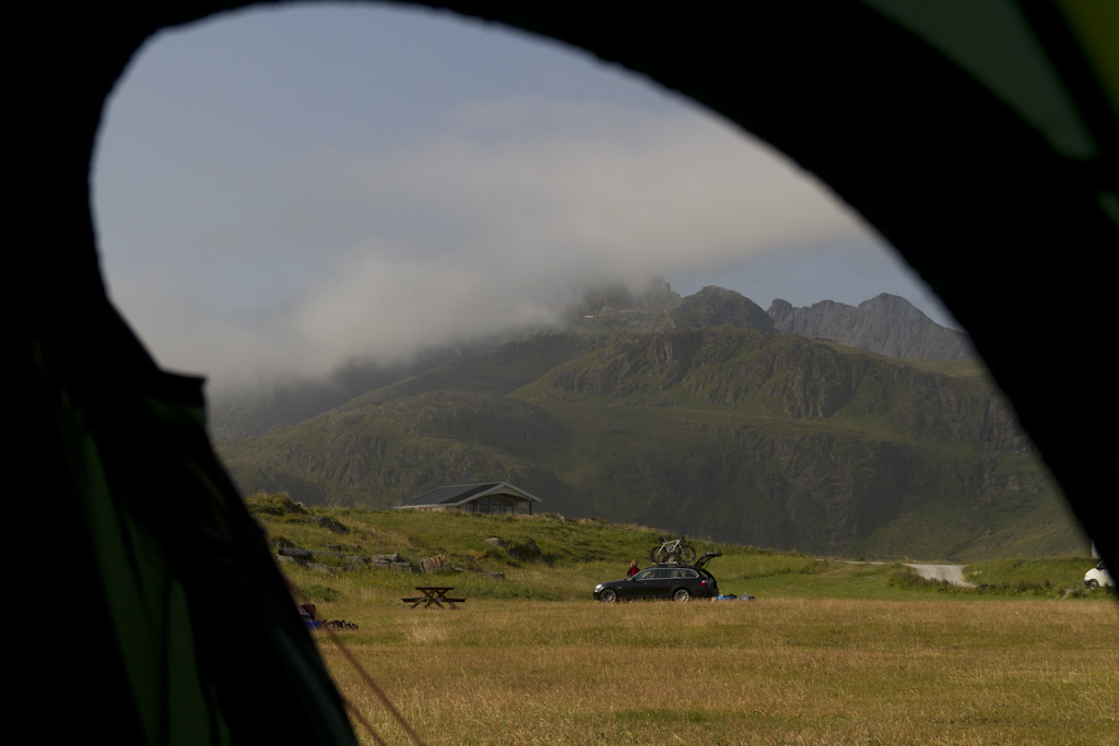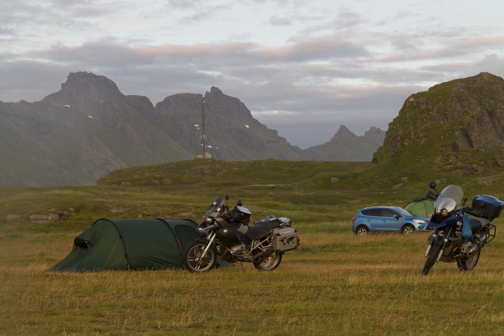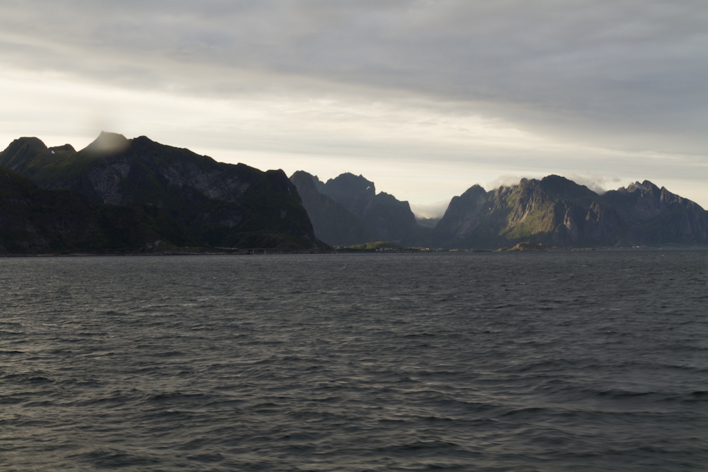 Bodossa odottelin lauttaa kolmisen tuntia jotta pääsisin Lofooteille. Lauttamatka kesti kaikkineen noin 4 tuntia, jolloin myös sää selkeni. Lofooteille saavuin Moskenesin satamaan, josta jatkoin matkaa Fredvangiin. Päätin pysähtyä Lofooteilla heti ensimmäiselle leirintäalueelle, koska kello oli satamaan saavuttaessa jo ilta yhdeksän. Alunperin oli tarkoitus majoittua mökissä jotta saisin teltan kuivaksi, mutta koska sää oli seljennyt, niin päätin laittaa teltan pystyyn. Maisemat Lofooteilla on pikaisen ajon perusteella hienointa ajamaltani reitiltä.