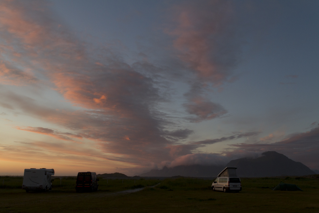 Ajattelin ajella jonnekkin Mo I Ranan kohdalle, mutta Sandvikin kohdalla vastaan tuli nätissä tunturimaisemassa leirintäalue, joten päätin pysähtyä tänne.