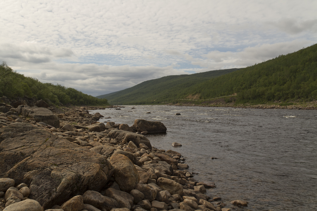 Today was riding day. No bigger plan, just to ride towards Kirknes. Road construction after Dan Brun. Roads were quite ok. Joona knew that Neiden is famous of recreational salmon fishing area.